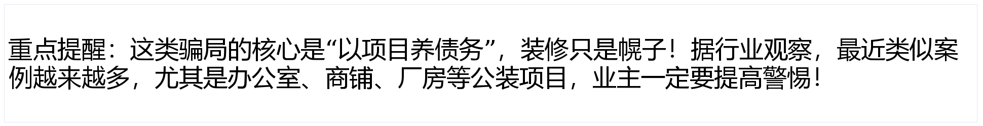 拖欠工人工资,而是靠项目疯狂“圈钱”,能够多找2-3家正轨公司比价,他们会以“备料”“工人出场”等表面敦促业从领取预付款。避免舍本逐末?